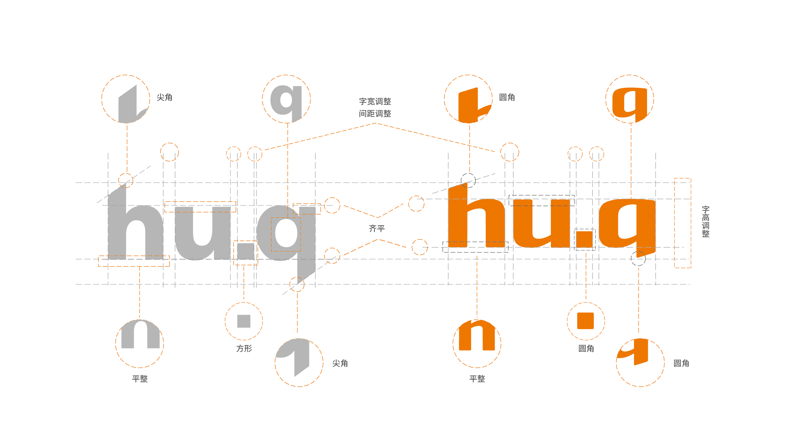 新的logo,從設(shè)計(jì)策略的角度出發(fā),零全設(shè)計(jì)團(tuán)隊(duì)并沒有大刀闊斧地改變,而是延續(xù)了原有l(wèi)ogo中為人熟知的字母圖形記憶,并進(jìn)行了更多細(xì)節(jié)上的設(shè)計(jì)調(diào)整。原有l(wèi)ogo字母字體方正、筆畫比較尖銳,對(duì)此,新logo對(duì)字母進(jìn)行了圓潤化處理,方中帶圓,在視覺上更顯親和力;設(shè)計(jì)降低了字母的高度,視覺結(jié)構(gòu)上使其更穩(wěn)重,字體間距也做了微調(diào),讓字母間隔更為緊湊,在視覺上更加干練;特別對(duì)字母“q”的筆畫進(jìn)行了調(diào)整,讓三個(gè)字母的線條更為流暢,使之形成節(jié)奏感和韻律感,也更為美觀;調(diào)整了H和Q的斜角程度,使之更加平穩(wěn);整體視覺更符合現(xiàn)代審美,更具國際化品牌形象。